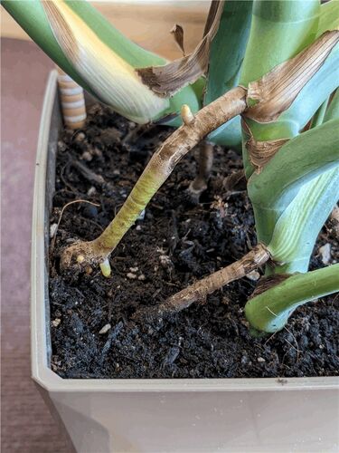 モンステラの親株の根本から何か出てきました。気根というやつかな。しばらくは成長を観察するように土を避けるようにしてみよう。 4月8日撮影 1週間前の様子 moonstera.cc